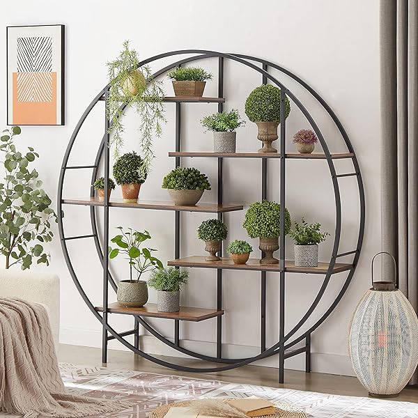 Byblight Wellston 70 86 In Brown 5 Tier Wooden Indoor Plant Stand Tall Flower Rack With 10 Hook Bb Jw0254gx The Home Depot